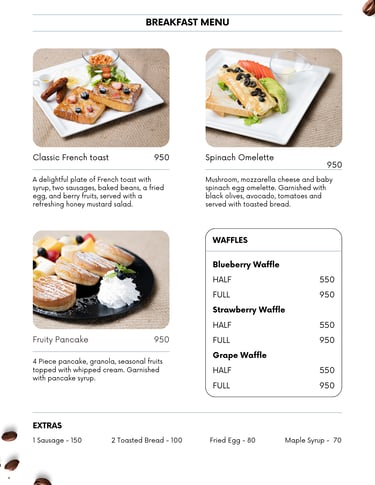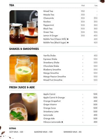 Explore our extensive selection of drinks and food, crafted to delight your taste buds.
